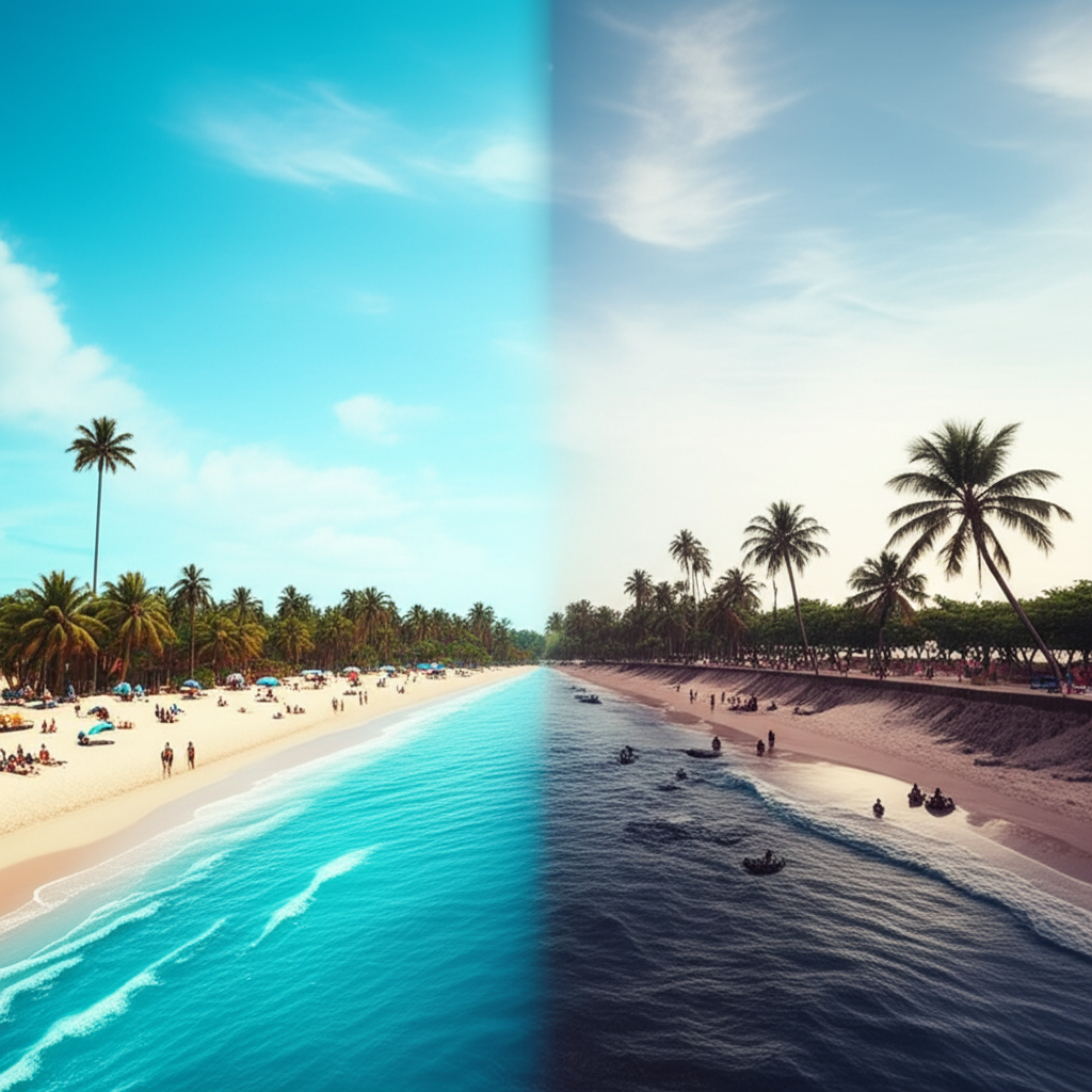 Perubahan iklim memicu frekuensi dan intensitas badai tropis, gelombang panas ekstrem, dan bahkan tsunami di beberapa wilayah. Badai dapat menghancurkan garis pantai dalam semalam, memindahkan ton pasir, merusak vegetasi pesisir, dan menghancurkan bangunan. Gelombang panas membuat pengalaman berjemur tidak nyaman dan berbahaya.- Dampak pada Kehidupan Publik: Penutupan pantai akibat bahaya menjadi lebih sering. Kerusakan infrastruktur memerlukan waktu dan biaya pemulihan yang besar, mengganggu aktivitas rekreasi selama berbulan-bulan atau bahkan bertahun-tahun. Ketidakpastian cuaca mengurangi jumlah pengunjung dan investasi pariwisata, berdampak langsung pada mata pencarian lokal.