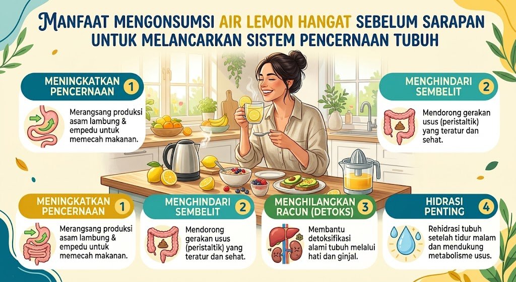 Memulai pagi dengan kebiasaan sehat adalah investasi jangka panjang bagi kesehatan tubuh. Salah satu ritual sederhana yang telah lama dipraktikkan oleh para pegiat hidup sehat adalah meminum segelas air lemon hangat sesaat setelah bangun tidur, tepat sebelum mengonsumsi sarapan. Kebiasaan ini bukan sekadar tren gaya hidup, melainkan memiliki landasan biologis yang kuat dalam membantu mengoptimalkan kerja sistem pencernaan manusia yang masih dalam keadaan “istirahat” setelah tidur malam.